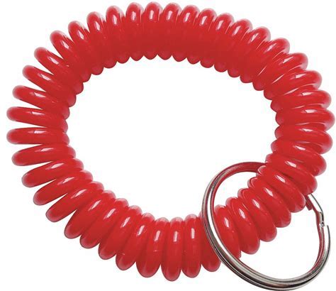 Wrist Coil Key Ring: 7/8 in Key Ring Dia, Polyurethane, Red Model: 25PA31