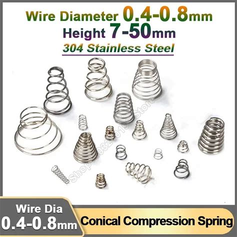 Wire Diameter 0.4 0.5 0.7 0.8mm Conical Cone Compression Spring Stainless Steel Small Taper Tower