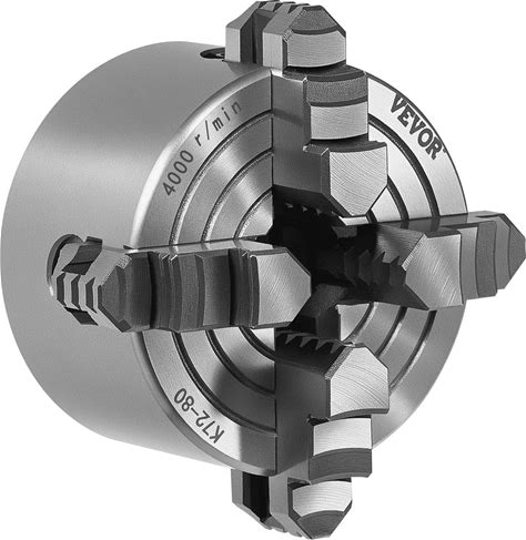 VEVOR 4-Jaw Lathe Chuck 3 Inch (80 Mm) 4-Jaw Chuck 0.1-3.15 in (5-80 Mm) Clamping Range With T-Key Fixing Screws Reversible Jaws HT300 Material