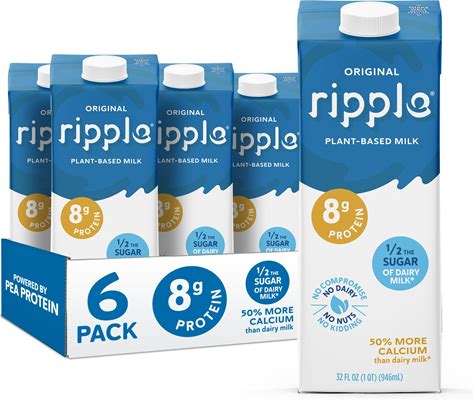 Ripple Original Plant Based Milk | 8G Of Quality Sourced Pea Protein, Calcium Rich | Shelf Stable | Vegan & Non GMO Certified | Dairy, Soy, Nut,