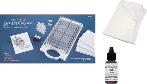 Spellbinders Betterpress Letterpress System Including System, Exclusive Press Plates, Black Mini Ink Pad, 15 Cotton Card Panels, Black Reinker And Flour Sack Cleaning Towel