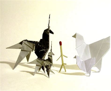 Hand Folded Silver Origami Unicorn Pendant - Blade Runner
