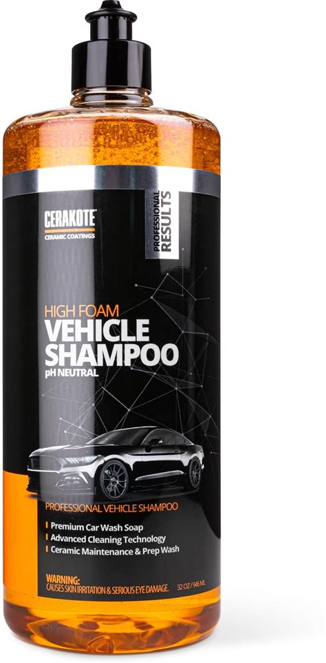 CERAKOTE High Foam Vehicle Shampoo (32 Oz. Bottle) - Ph Neutral Premium Car Wash Soap - Ceramic Coating Prep And Maintenance - Citrus Scent - Maximum