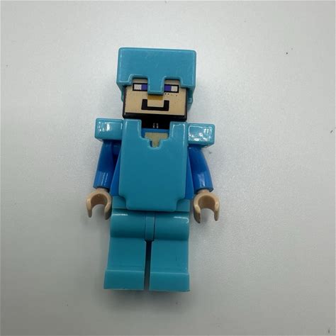Lego Steve Minifigure Medium Azure Diamond Helmet Armor Minecraft 21117 21124. LEGO. LEGO R Minifigures. MIN015.