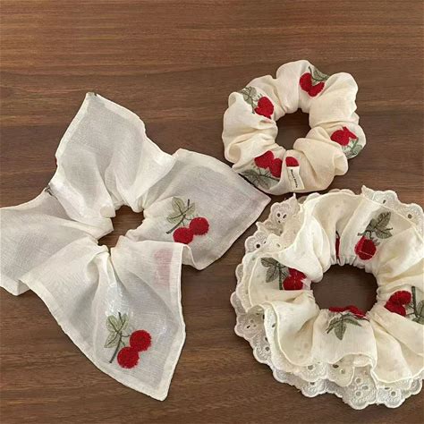 1Pc Weet Embroidered Cherry Four-Layer Lace Large Intestine Hair Ring Elegant Headband Scarf
