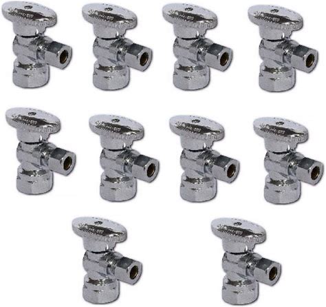 (10-Pack) EZ-Fluid 1/2" FIP X 3/8" OD Compression Chrome Brass Angle Stop Valve, 1/4 Turn Handle,Water Shut Off Ball Valve For Faucet, Toilet, Sink