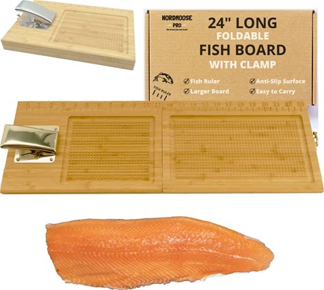 18" Bamboo Fish Cleaning Board Kit Anti-Slip Fish Cutting Board Set Fish Filet Board With Scale Fish Measure Board Include Fish Fillet Knife, Clamp,