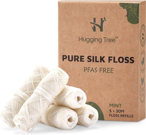 HUGGING TREE Natural Silk Dental Floss Refills | PFAS Free Dental Floss | Zero Waste Biodegradable | Mint (5 Pack, 33 Yards Each)