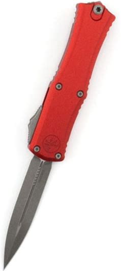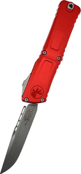 Microtech Cypher II D/E Stonewash Standard Automatic Folding Knife 3.55in M390MK Steel Red 1242-10RD