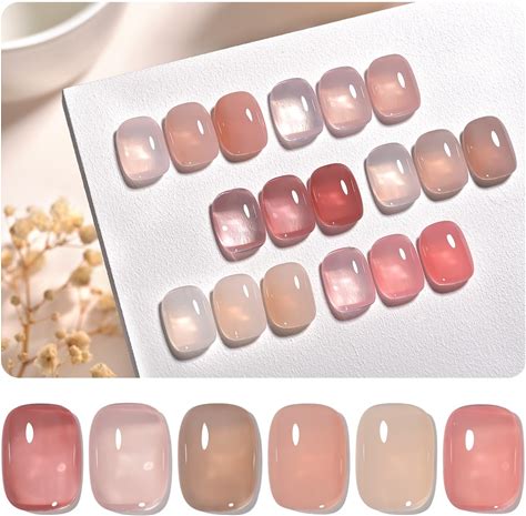 GAOY Jelly Nude Pink Gel Nail Polish Set, 6 Transparent Colors Sheer Brown Soak Off UV Light Cure Gel Polish Kit For Salon And Nail Art DIY At Home