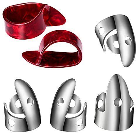 6 Pcs Banjo Finger Picks Set Includes Stainless Steel Finger Picks & Thumb Picks. Banjo Finger Picks. Silver, Red. Picks.