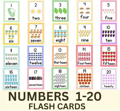 Colorful Numbers 1-20 Flashcards - Printable Learning Tool