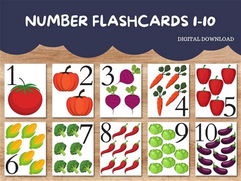 Number Flash Cards | Number Flash Cards 1-10 | Printable Flash Cards | Flash Cards 1-10 | Learning Flash Cards | Vegetables Flash Cards