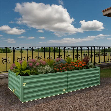 Garvee 6x3x2ft Galvanized Raised Garden Bed,Deep Root Planter Box For Vegetables,Flowers,Herbs-Large Metal Raised Garden Bed Kit Outdoor,Green