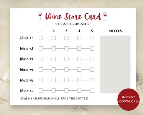 Wine Tasting Card, Wine Score Cards, Wine Tasting Scorecard, Six Wines, Printable Wine Score Card, Wine Tasting Party, Tasting Scorecards