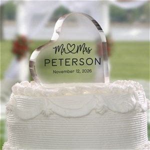 Personalized Wedding Heart Acrylic Block Mr & Mrs Cake Topper, Custom Wedding Keepsake Bride & Groom
