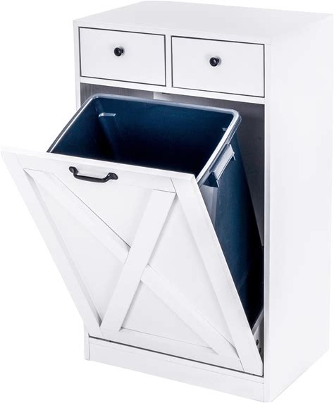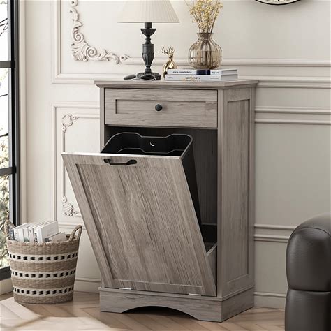 Yongchuang Double Tilt Out Trash Can Cabinet 20 Gallon, Kitchen Wooden Hidden Garbage Can With Drawer, Tilt Out Laundry Hamper Cabinet With Storage