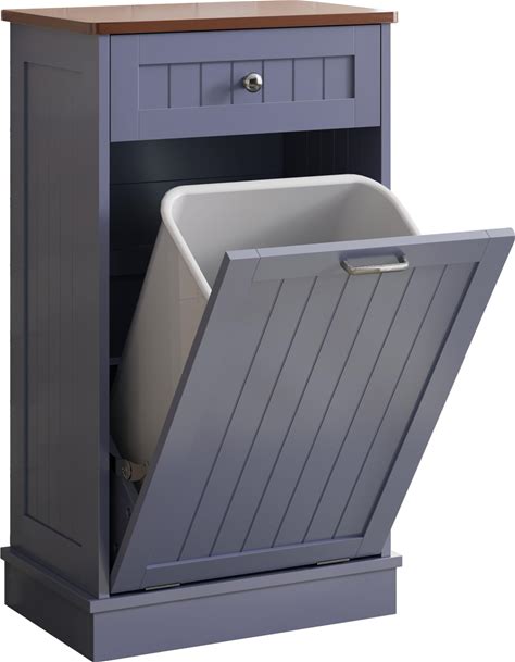 Spurgehom Trash Cabinet,Tilt Out 13 Gallon Trash Can Cabinets,Wooden Freestanding Waste Bins Kitchen Cabinet With Hideaway Drawer And Pet Proof Trash