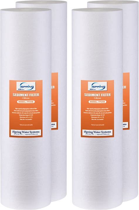 Ispring FP25BX4 High Capacity 20" X 4.5" Water Replacement Cartridge Fine Sediment Filter, 4 Pieces / 5 Microns, White, 4 Count