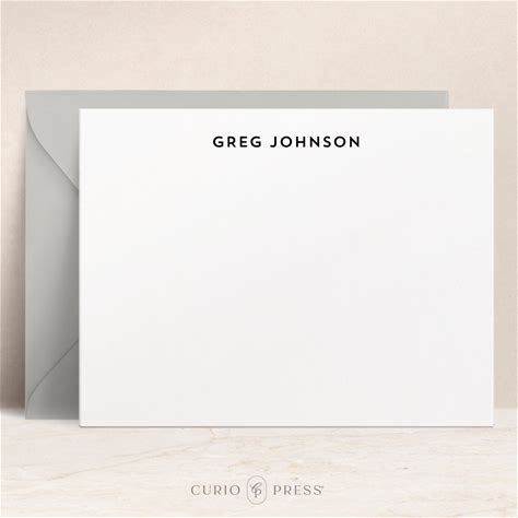 Personalized Business Note Cards & Envelopes, Flat Stationery For Men, Custom Thank You, Interview, Office Or Client Notes - Minimalist Flat