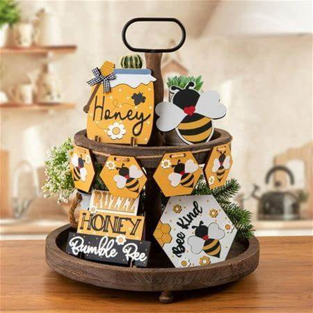 3D Bee Tiered Tray Signs: Honeycomb Decor Set