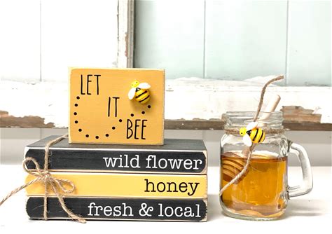 Bee Tiered Tray Decor, Wood Book Stack And Faux Honey Jar, Summer Sign
