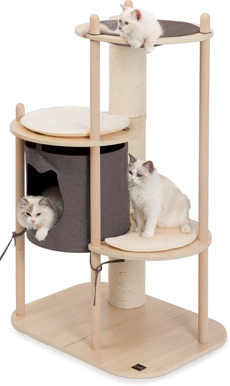 PISARRY Cat Tree Tower, 46 Inch Modern Cat Tree For Indoor Cats Large Adult, Luxury Cat Condo With Scratching Post, Real Solid Wood Branch Indoor Boho