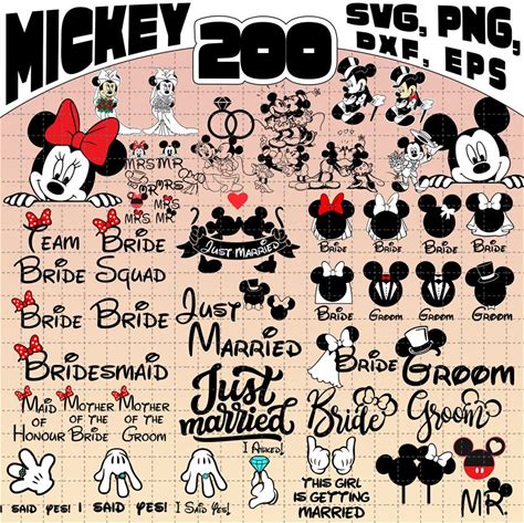 Mickey Minnie Bride Svg Bundle, Bridal Party, Mickey Minnie Custom Name Wedding Svg Png, Bride Groom Mickey Minnie