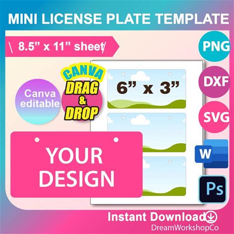 Car License Plate Sublimation Template, Canva, SVG, DXF, Ms Word Docx, Png, Psd, A3 Sheet, Printable
