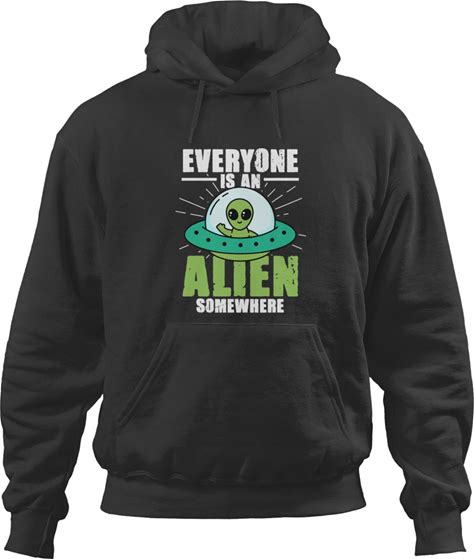 Alien Believer Hoodie - Everyone Is An Alien Somewhere 32 Black Unisex Activewear - Unique Sci-Fi Fashion Gift