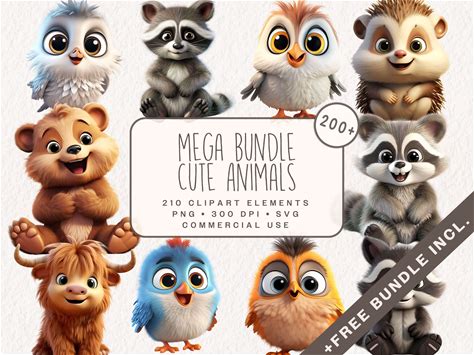 Cute Animals Mega Clipart Bundle, Cartoon Raccoon, Highland Cow, Peacock, Bird, Hedgehog, Deer, Bunny Graphics In PNG And SVG