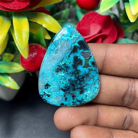 Azurite Cabochon: Turquoise Shattuckite Gemstone Pendant (45X34mm)