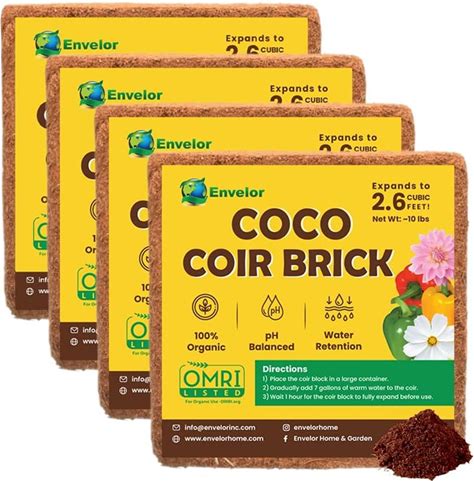 Coco Coir For Plants 4-Pack - 2.6 Cu. Ft. Compressed Coconut Coir Bricks, 10 Lb. Organic, Low EC, Ph Balanced Coco Peat For Indoor & Outdoor Gardening