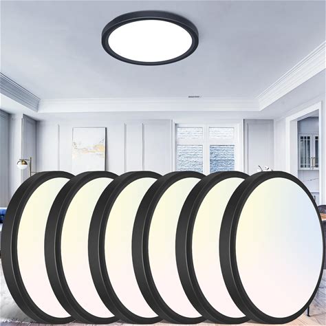 Libtit 12 Inch Flush Mount LED Ceiling Light Fixture, 3000K 4000K 6500K Adjustable, 28W 3200Lm Black Round Lighting Fixtures For Bathroom Shower