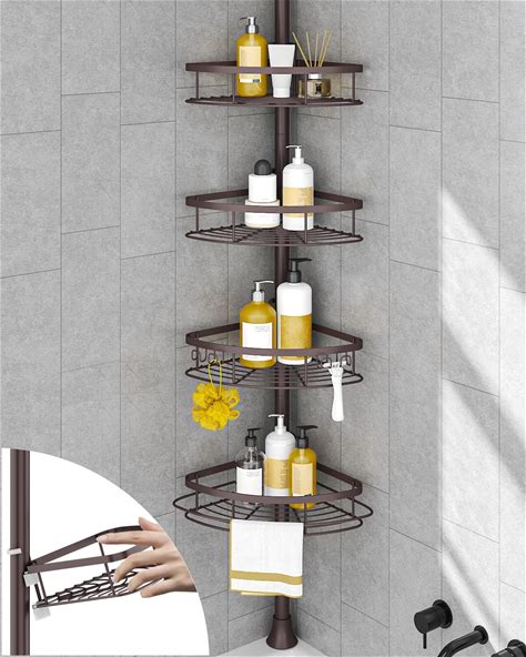 SEIRIONE Rustproof Shower Corner Caddy Organizer For Bathroom,Tension Pole With 4 Baskets, For Bathtub Storage Rack, 34 To 116 Inch Height, Bronze