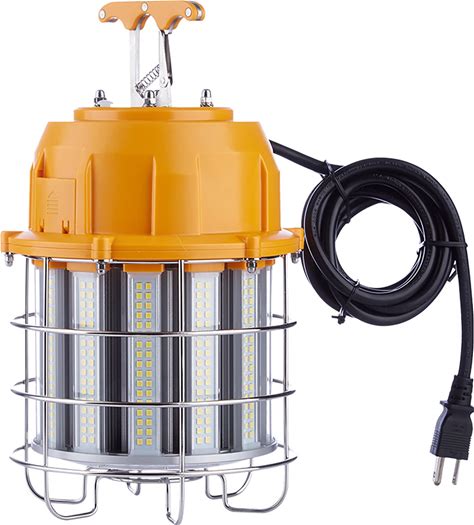 JC-LGL LED Temporary Work Light 100W LED Construction Lights 12,000Lm 5000K Daylight Stainless Steel Guard Portable Hanging Work Lighting Workshop