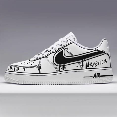 Custom Air Force 1 Sneakers-Print Air Force 1S,Cartoon AF1,Hand Painted Black Drips,Low Top White Shoes,Customized Airforce1 Gift,Unisex