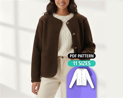 Jacket Sewing Pattern - Easy Digital PDF - Winter Wool Fleece Coat - Instant Download - 11 Sizes