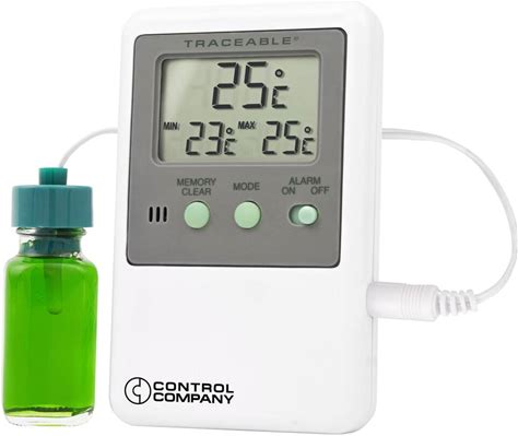 Digital Refrigerator / Freezer Thermometer With Alarm Mckesson Fahrenheit / Celsius -58A! To +158A!F (-50A! To +70A!C) Glycol Bottle Probe