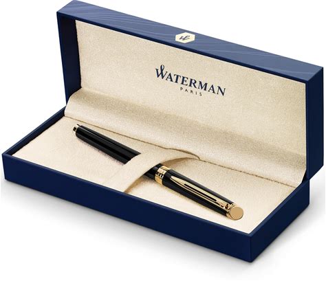 Waterman Hémisphère Fountain Pen Black With Gold Trim Medium Nib Blue Ink Gift Box