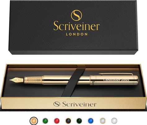 Scriveiner Personalized Gold Fountain Pen - Stunning Luxury Pen, Real Gold Plating, Schmidt Ink Refill, Best Engraved Fountain Pen Gift Set For Men &