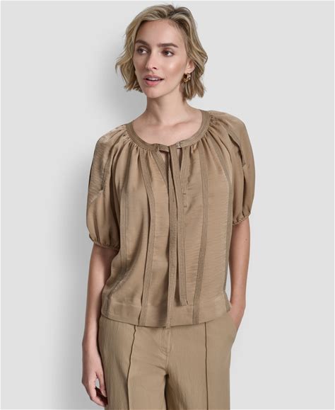Dkny Women's Puff-Sleeve Top Stitch Tie Front Blouse - Travertine - Size M