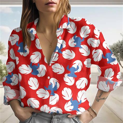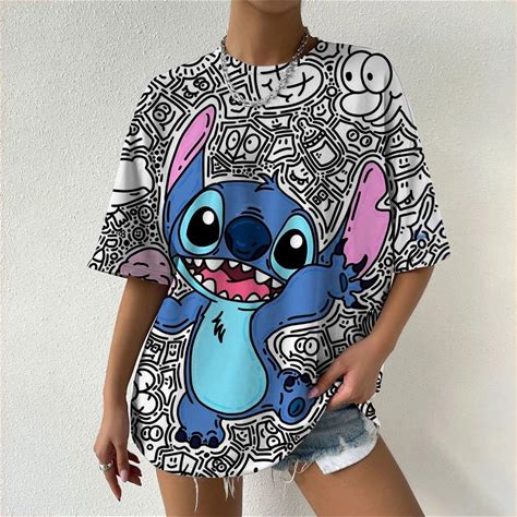 Disney Stitch Print Simple Printed Womens Short Sleeve Street Fashion Tops Oversize Casual Clothing