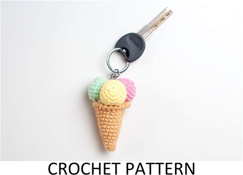 PDF Pattern Download Crochet Amigurumi Mini Ice Cream Cone Keychain