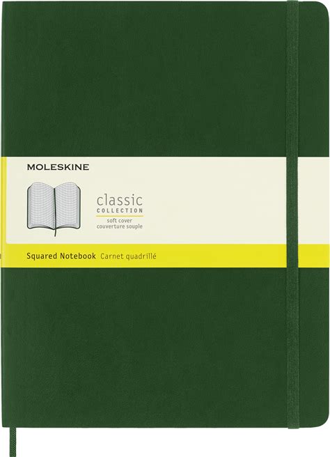 Moleskine Classic Notebook, Soft Cover, XL (7.5" X 9.5") Squared/Grid, Myrtle Green, 192 Pages