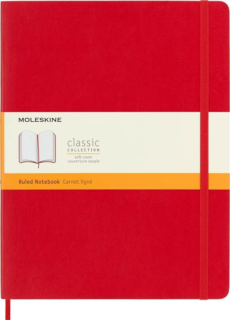 Moleskine Classic Notebook, Soft Cover, XL (7.5" X 9.5") Ruled/Lined, Scarlet Red, 192 Pages