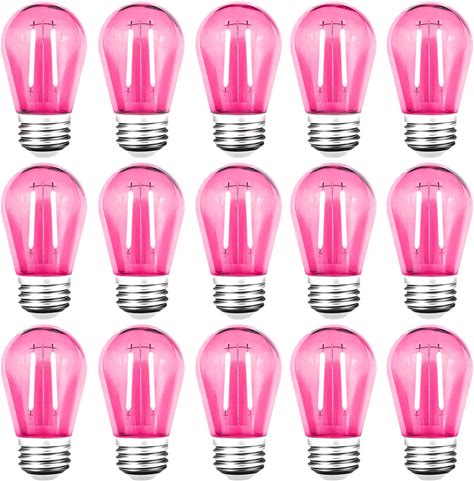 GUILEDUO 15 Pack S14 LED String Light Bulbs, Shatterproof 2 Watt Pink Replacement Bulbs For Outdoor String Light, Waterproof Decorative E26 Base Pink