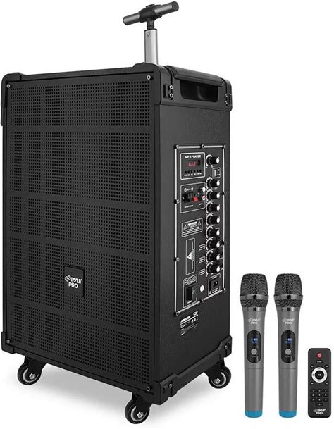 Pyle 12' Portable Wireless Bluetooth Speaker System - Wireless Microphone, 80 Watt - FM Radio, Black