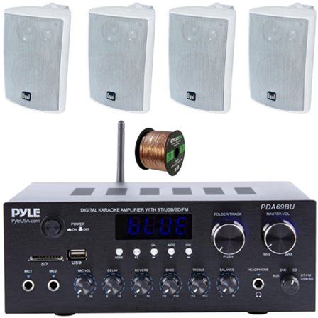 Pyle In-Dash Marine Boat AM/FM USB AUX Radio Headunit Receiver Bundle Combo With 4 X 6.5'' 2-Way White Audio Speakers, 4-Channel Waterproof Amplifier, Radio Shield, Speaker Wire, Antenna