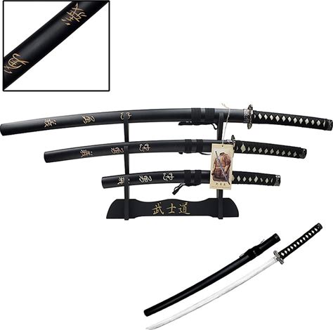 Bushido Samurai Katana Set 3 Piece Black With Stand - By-The-Sword